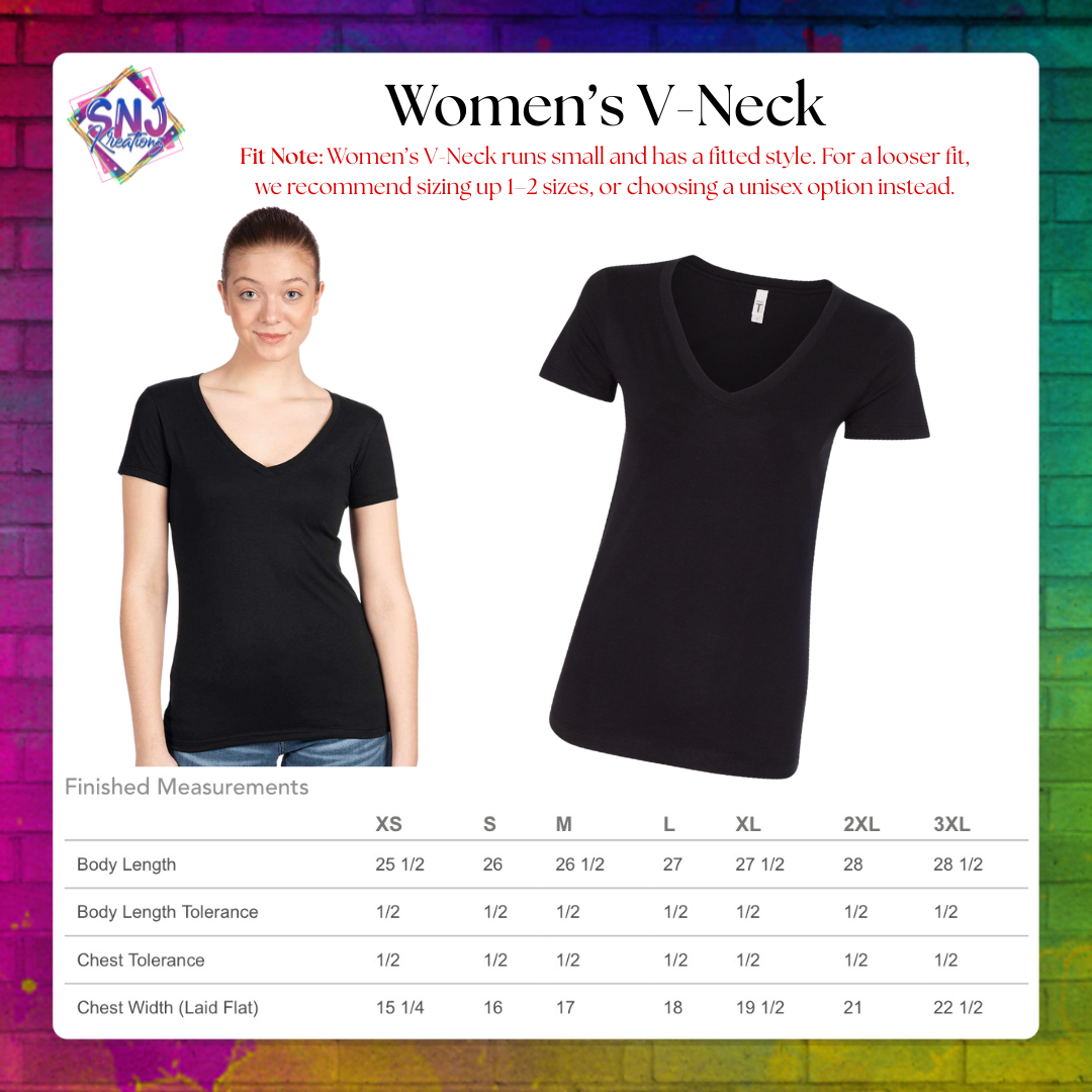 - Women V-Neck: S-3XL (True to size with a flattering V-neck cut. For a looser fit, consider sizing up)
