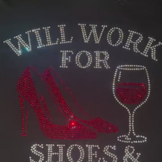 Rhinestone Shoes & Wine V-Neck Shirt • Funny Wine Lover Tee
